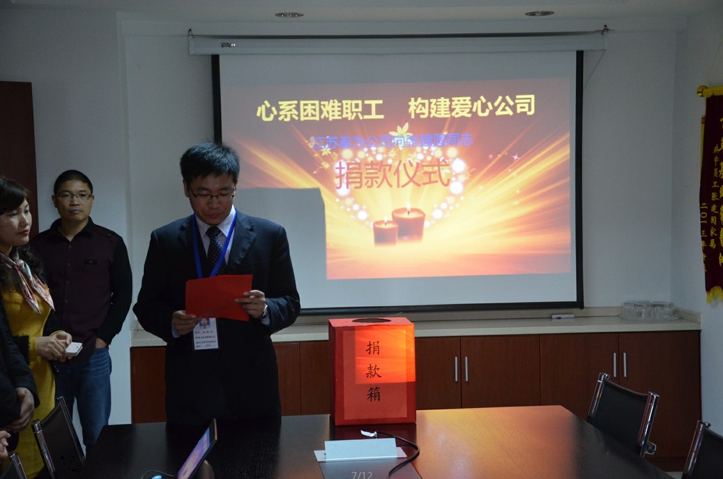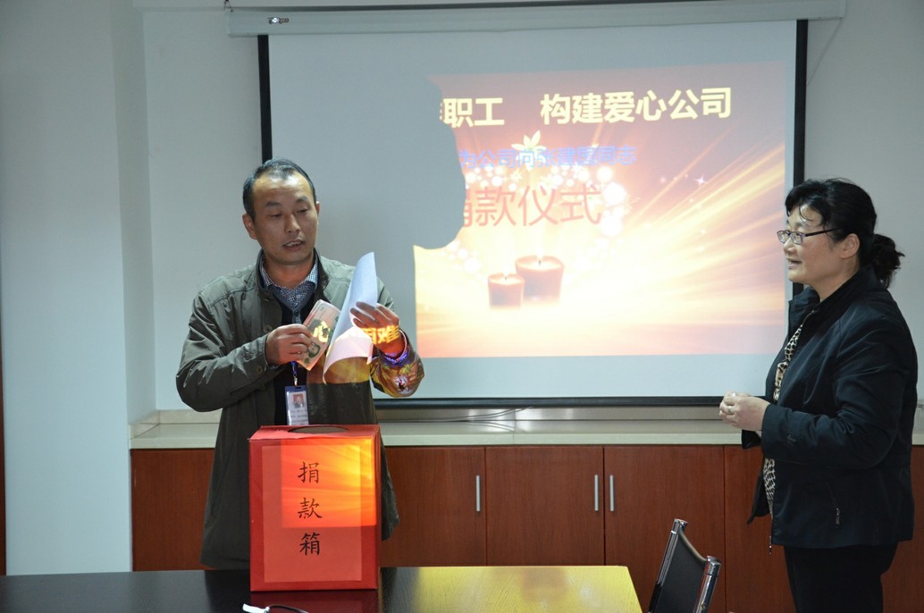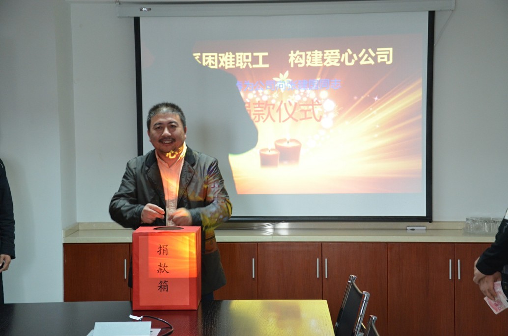 11月1日中午11點公司組織捐款儀式為病重員工張建國籌集善款,公司全體領(lǐng)導(dǎo)及同事紛紛伸出援手為張建國捐款,蔣總發(fā)表講話,表達(dá)了對病重同事的極大關(guān)心。