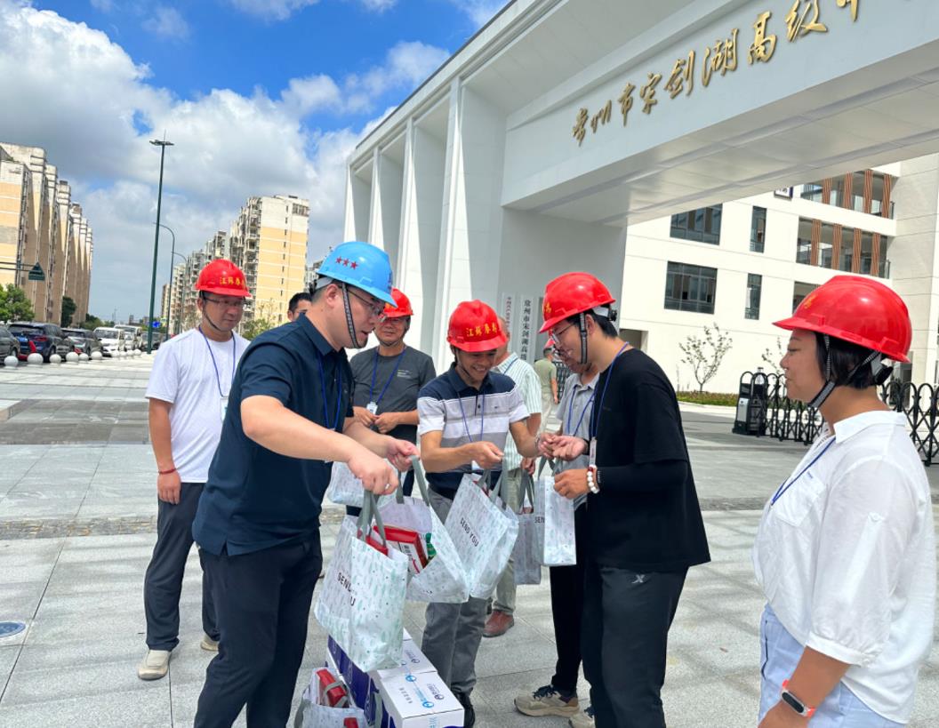 公司項(xiàng)管中心、督查辦、辦公室等公司領(lǐng)導(dǎo)一行先后來(lái)到華旋全過(guò)程咨詢項(xiàng)目、宋劍湖高中項(xiàng)目、吉谷新材料等施工現(xiàn)場(chǎng),為一線員工送去了的防暑降溫用品和高溫補(bǔ)貼。