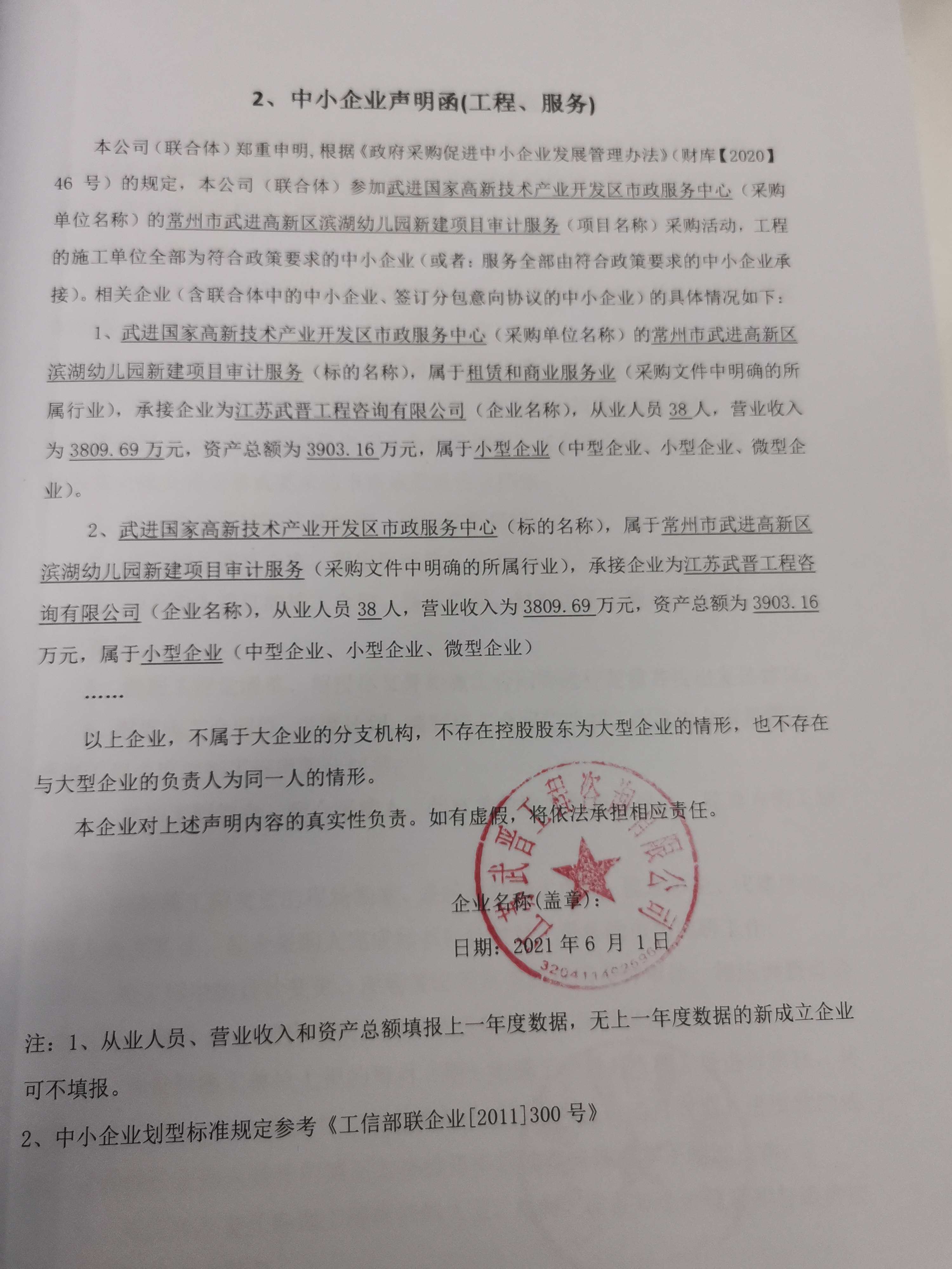 二、項目名稱:常州市武進高新區(qū)濱湖幼兒園新建項目審計服務(wù)
