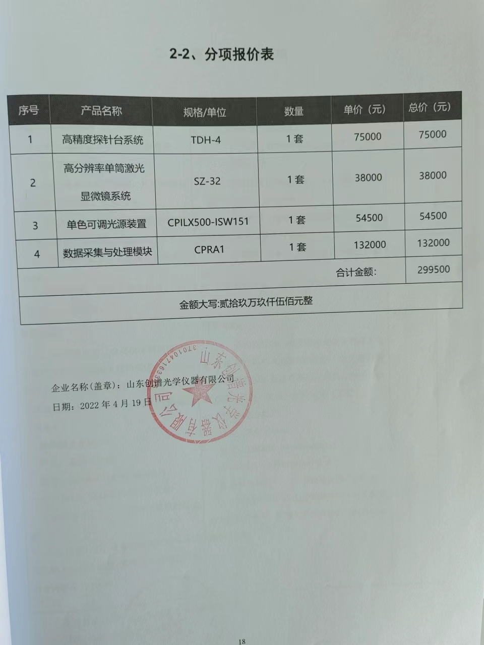名稱:變溫高真空光電系統(tǒng) 品牌:創(chuàng)普 規(guī)格型號:詳見附件 數(shù)量:1套 總價:292000元 |