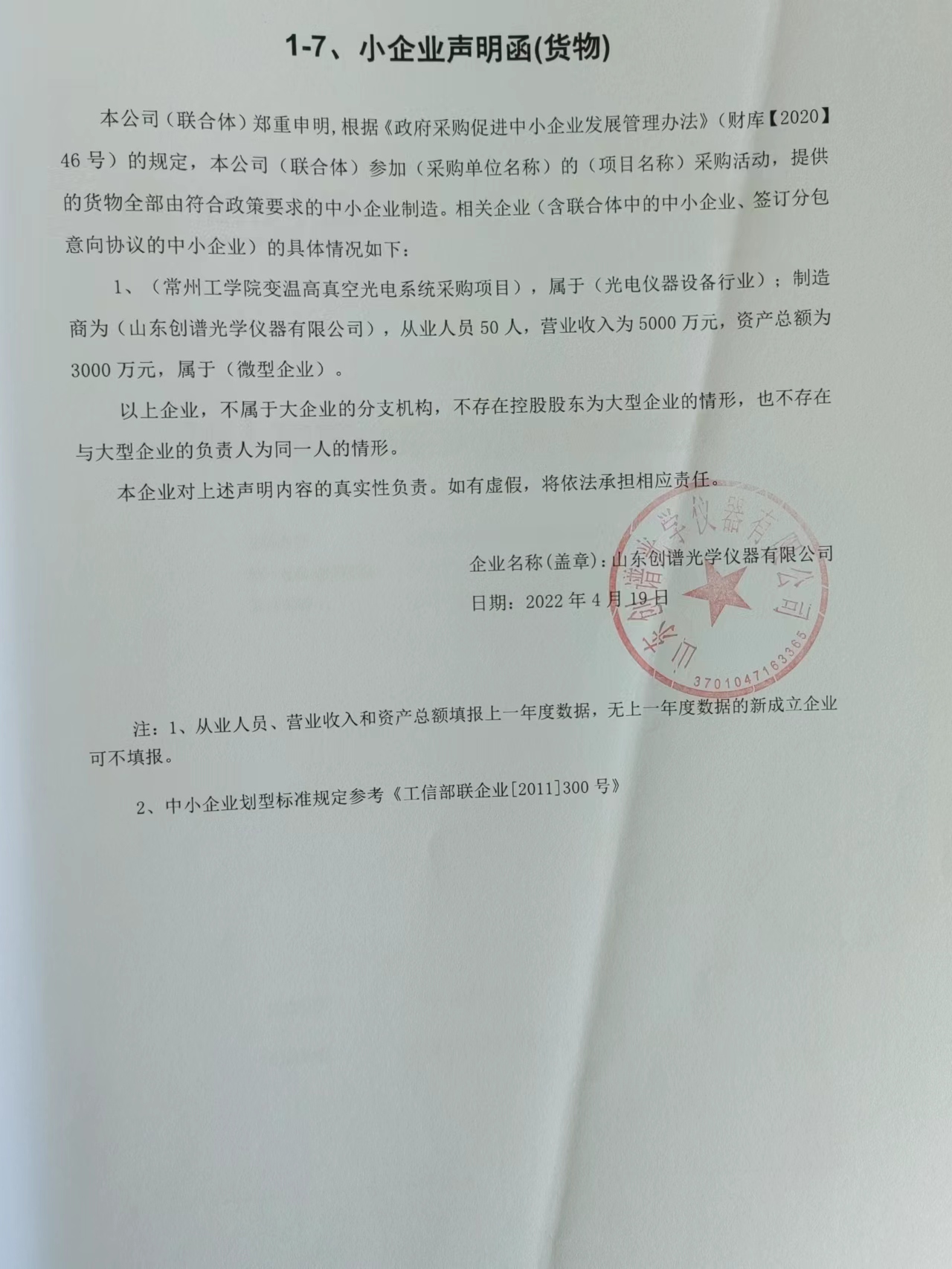 3、中小企業(yè)聲明函