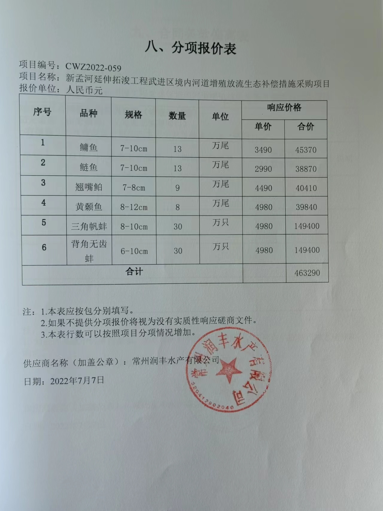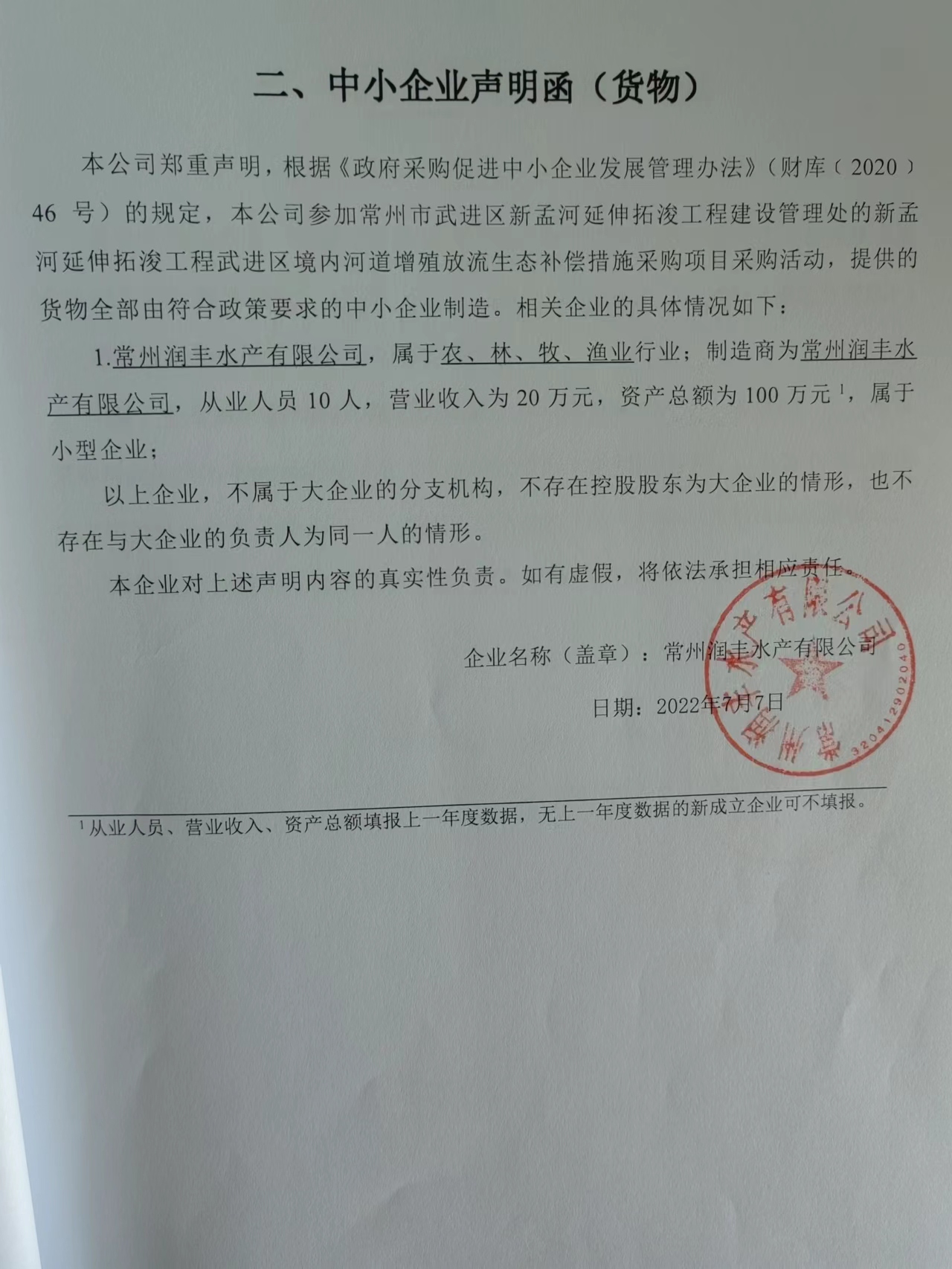 二、項(xiàng)目名稱:新孟河延伸拓浚工程武進(jìn)區(qū)境內(nèi)河道增殖放流生態(tài)補(bǔ)償措施采購項(xiàng)目