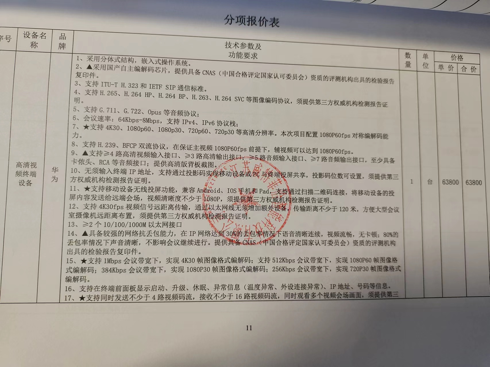 名 稱:常州幼兒師范高等??茖W(xué)校視頻會(huì)議系統(tǒng)采購(gòu)項(xiàng)目 品 牌:華為 規(guī)格型號(hào):詳見(jiàn)響應(yīng)文件 數(shù) 量:1批 總 價(jià):人民幣捌萬(wàn)玖仟元(小寫:¥89000元) |